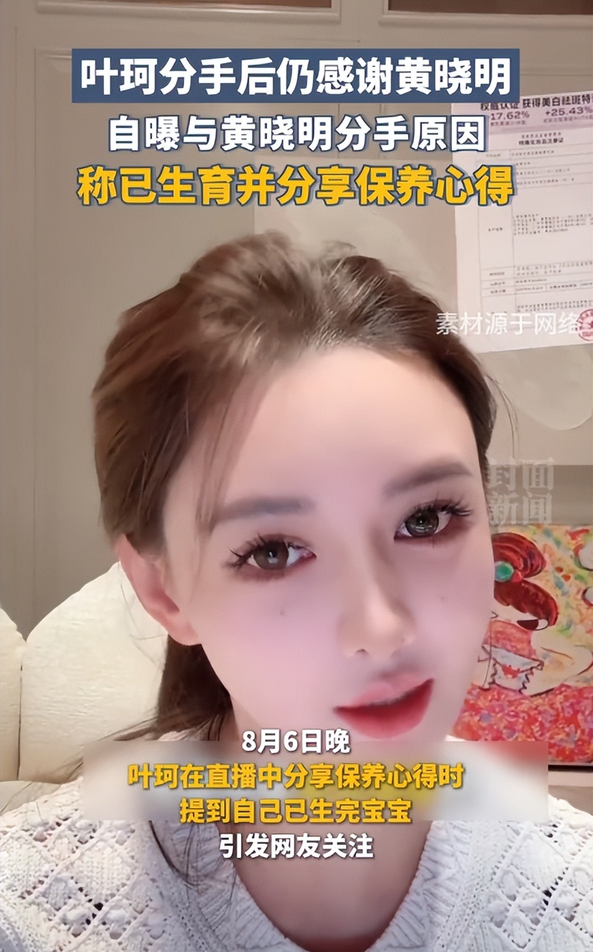 据叶柯透露,女儿留在黄晓明家由父母抚养,至于分手原因,叶珂直播里透露是“现实原因”,还带着哭腔说“他教我的东西一辈子不会忘”。