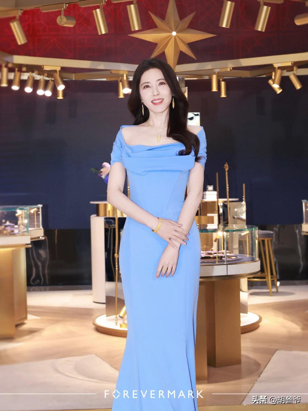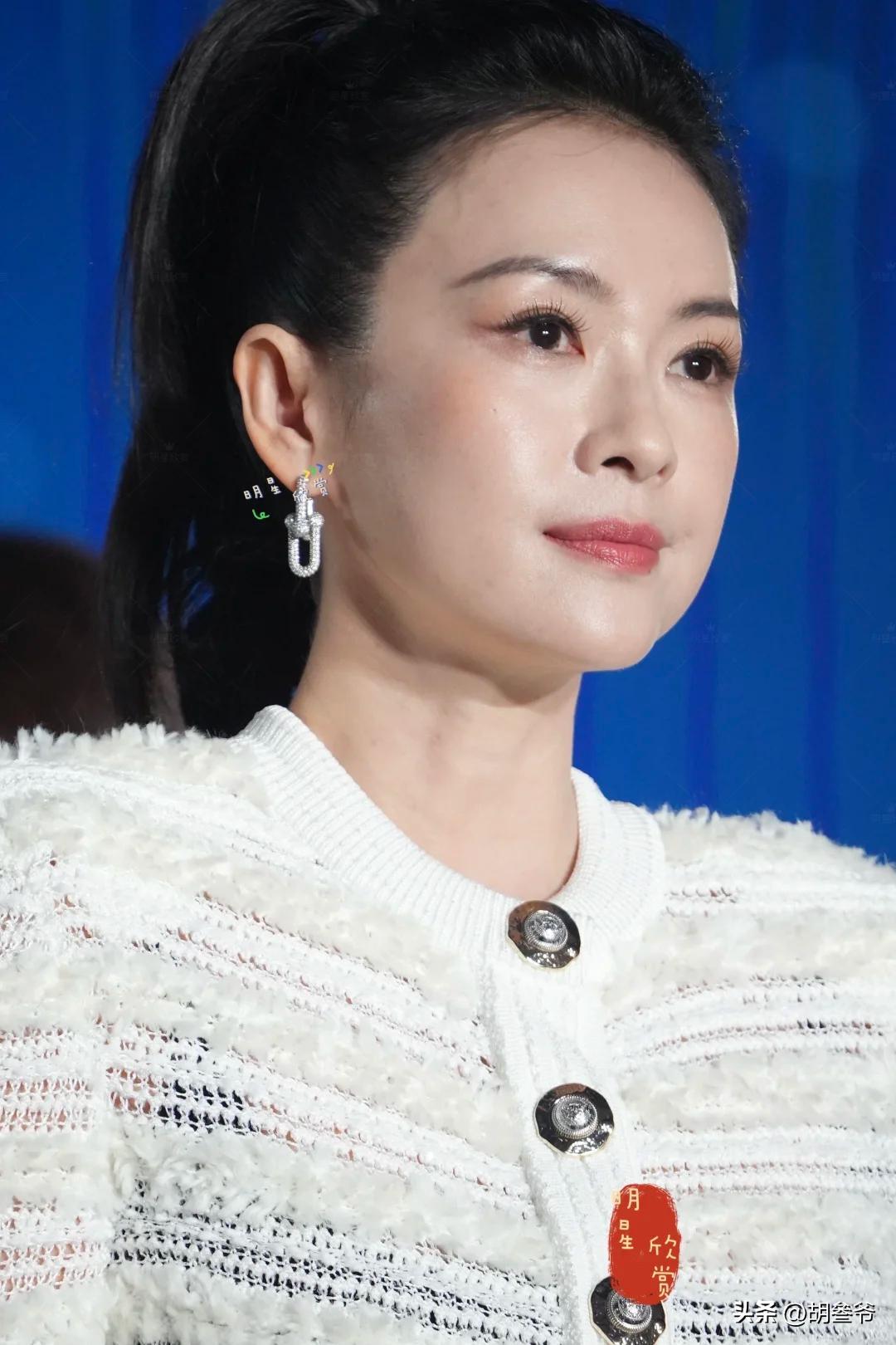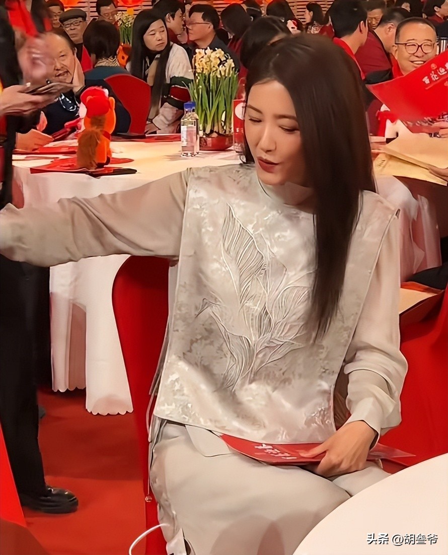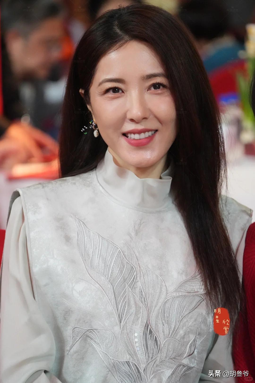 一头披肩长发,从背后看完全看不出年龄感,曾黎果然还是适合淡雅的妆容。