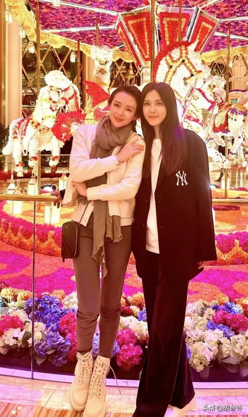 照片里的曾黎和章子怡,一个淡雅如菊,一个明艳动人,各有各的美。