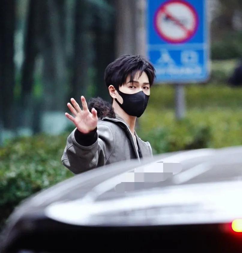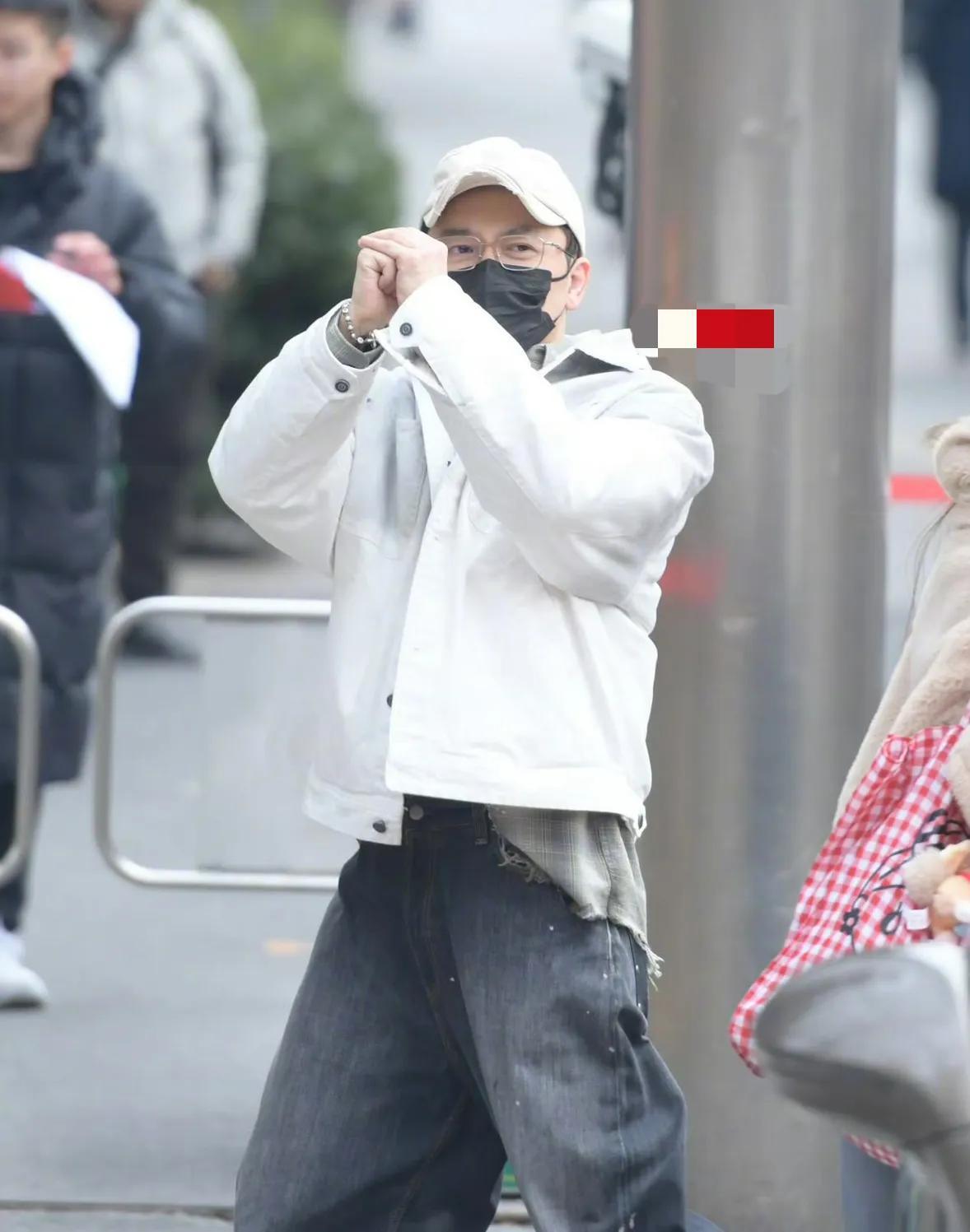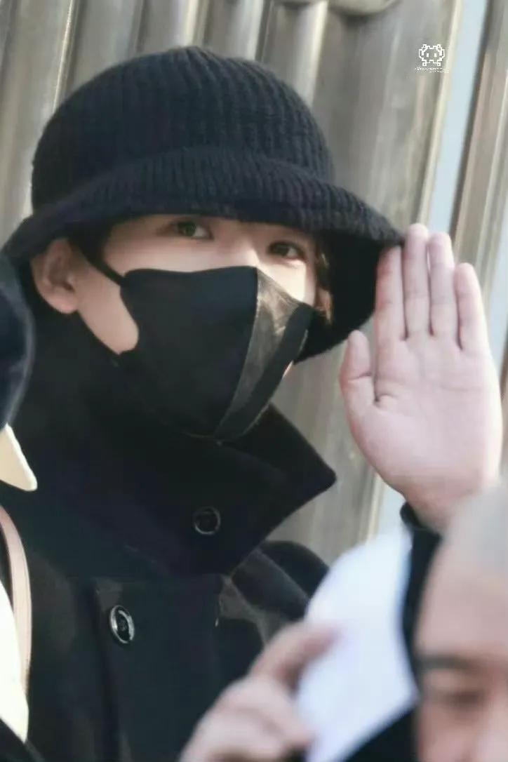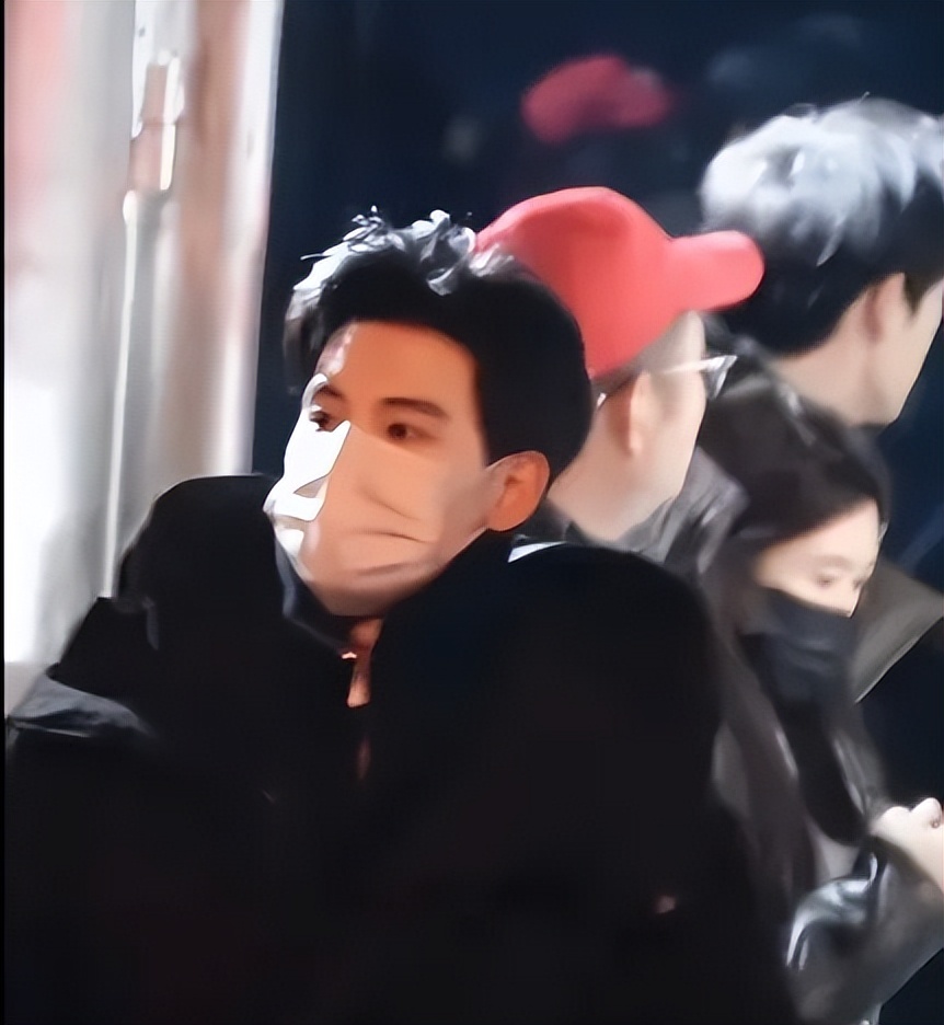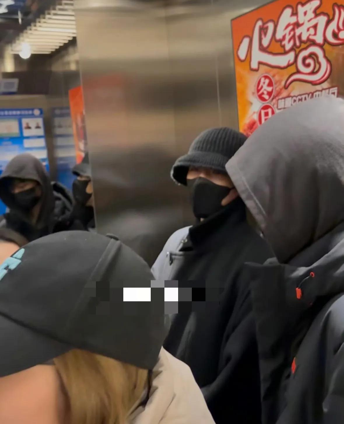 当天他包裹严实,身穿黑色羽绒服、戴着黑色口罩,头上还戴着卫衣帽子,很是低调。