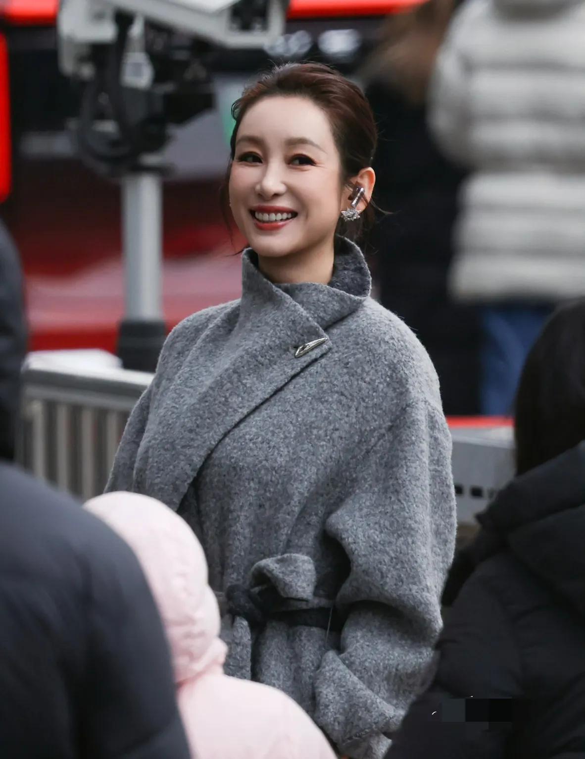 秦海璐也现身了第二次联排,一身灰色翻领双面呢大衣,搭配盘发,十分高级。