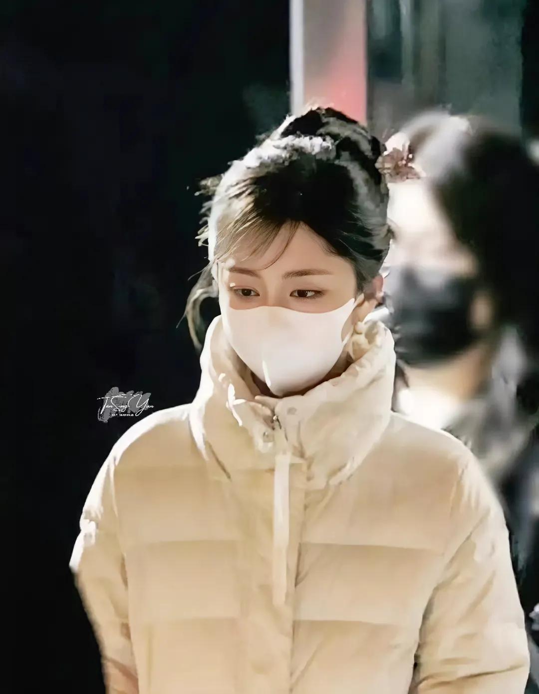 谭松韵就在第二次联排中亮相,身着白色长款羽绒服的她,裹得严实却难掩超纤瘦的体态。