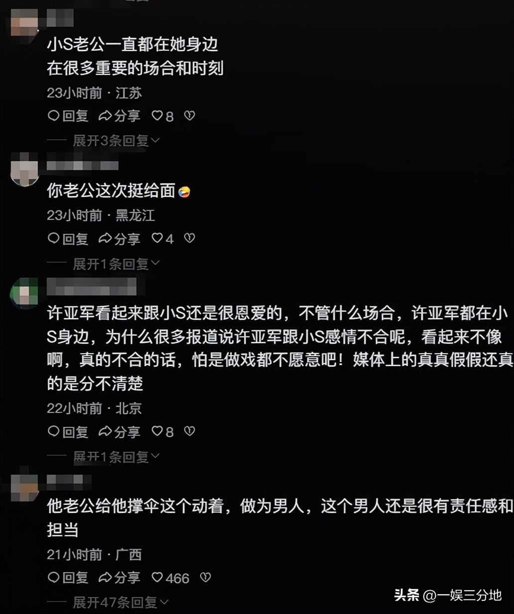 昨天,在台煤发布的视频下,评论区里近千条评论都在夸赞许雅钧体面,不管怎么样,他每次出镜都会护着小S。