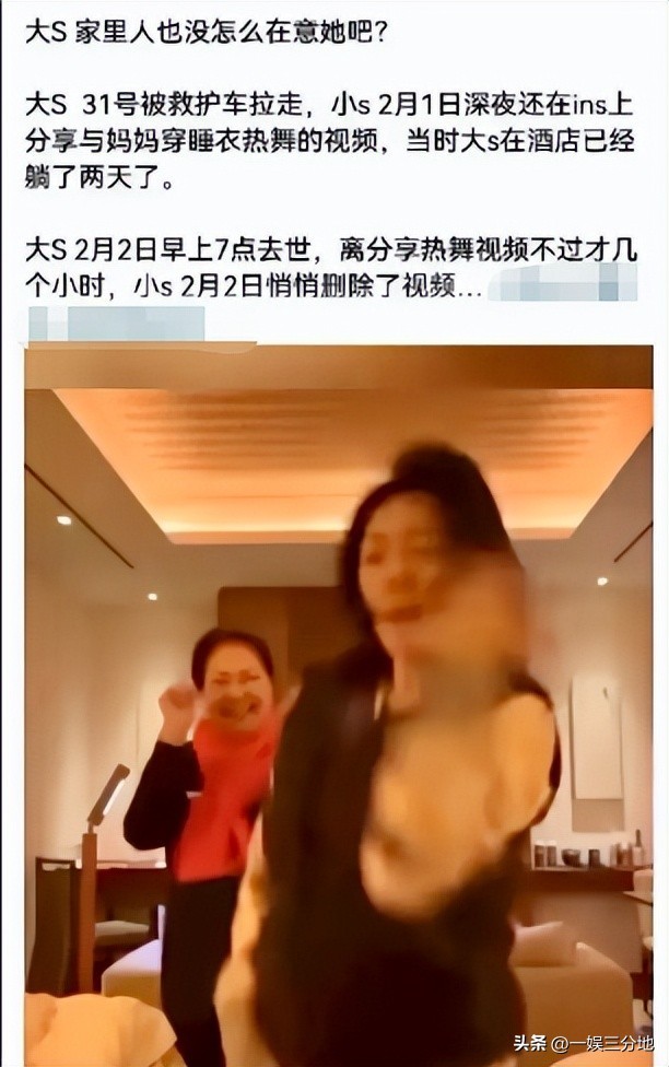 母女两人也被质疑不管大S的健康,只顾着一味的热舞享乐,随后小S悄悄的删除了视频。