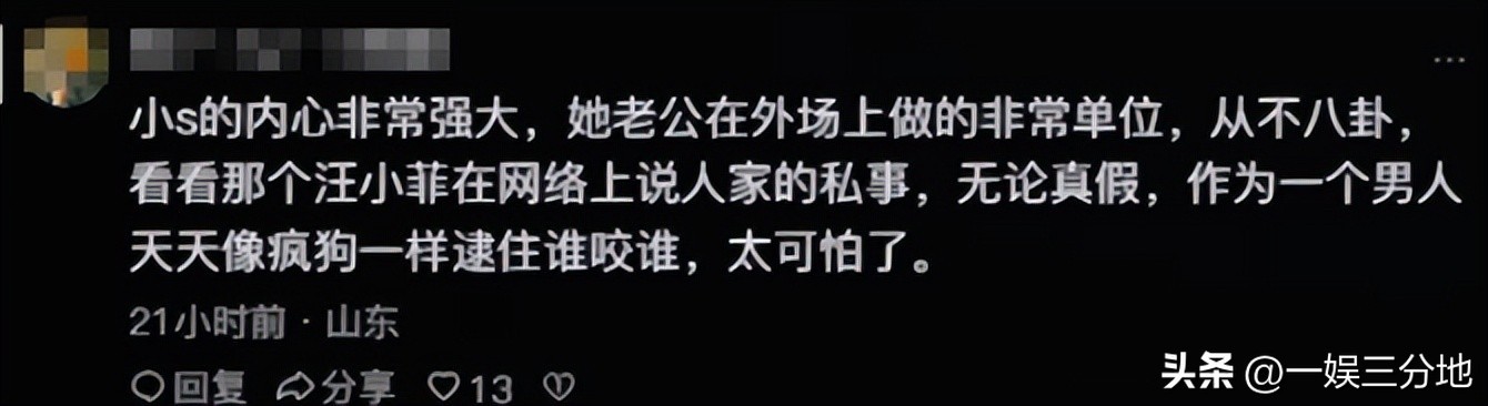 还有的夸赞许雅钧很男人,从来不八卦,不像汪小菲一样天天在网上说别人的私事,像条疯狗逮谁咬谁。