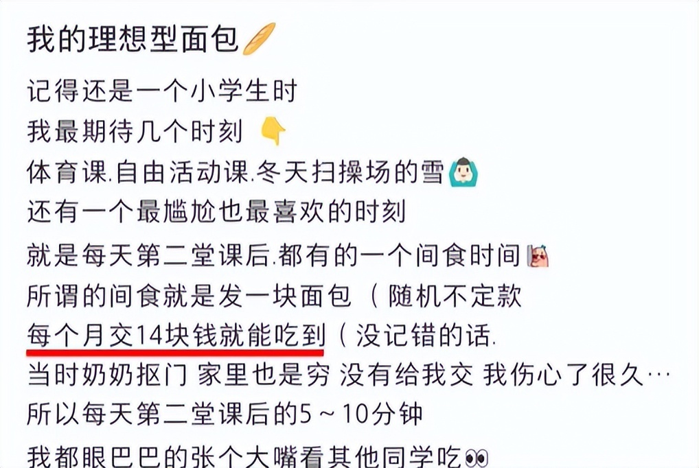 后来,他还曾分享自己上学时因为奶奶抠门,家里穷的缘故,没吃上课间面包的故事。