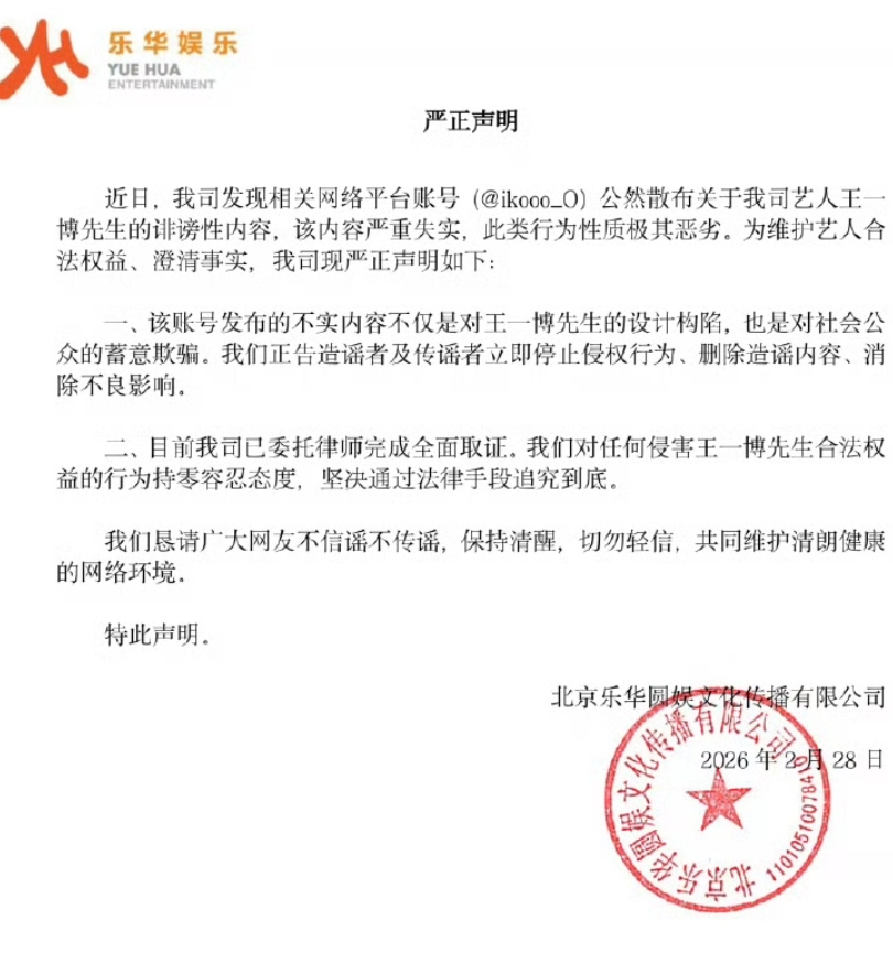 目前王一博所属公司已经发布声明否认了聊天记录的真实性。