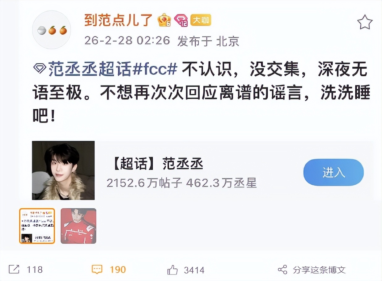 前两个瓜还在持续发酵,2月28日凌晨2点26分,范丞丞工作室的一条辟谣,直接让网友直呼“干得漂亮”。