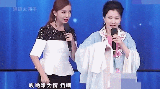 在央视的戏曲综艺节目里,何赛飞老师教主持人朱迅用水袖,当看见前面有一位帅哥时,想看又觉得难为情就可以遮挡。