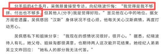 分手后四个多月,吴佩慈还在专访里主动忏悔“我觉得是我不够拼,付出也不够多。”