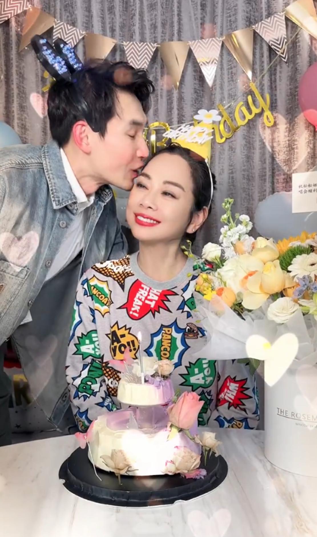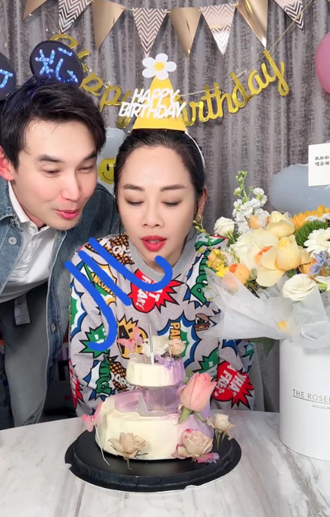 为老婆准备鲜花蛋糕庆生的张铎,亲自为她点燃生日蜡烛,随后镜头一转,寿星陈松伶出镜了。