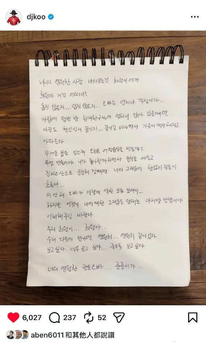 2月2日,具俊晔在社交平台晒出一封手写信,以此寄托对大S的思念与缅怀。信中他写下诸多深情话语:“直到现在都分不清这是现实还是梦”,“对你的思念让眼泪无止尽地流下来”,还期许道“等我们下次再见的时候,就永远在一起吧”,字里行间满是不舍,反复倾诉“好想你,真的好想你……想你想到快要死了”。