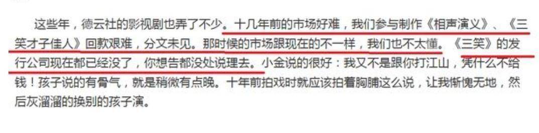 按照郭德纲的逻辑,公司没挣到钱甚至还赔钱了,曹云金怎么好意思要片酬呢。