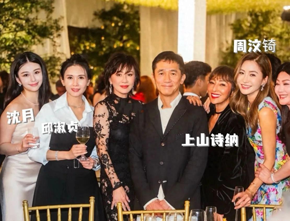 梁家辉江嘉年,钟镇涛范姜和女儿钟懿、关之琳、上山诗钠、袁咏仪、周汶锜等等都来了,他们都是一个圈子的,每逢其中一个人过生日或者组织聚会,总会看到这一群人聚餐。