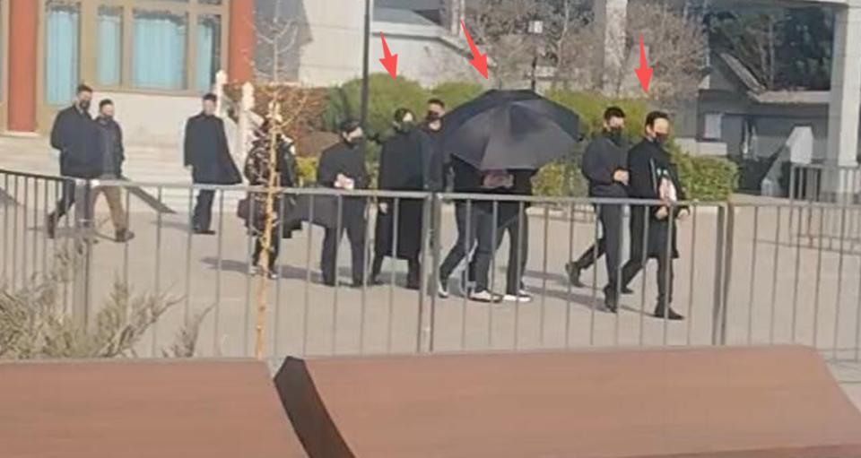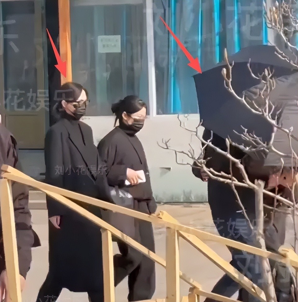 她这次穿着一身黑,表情严肃,悼念完罗晋父亲之后,和罗晋一同上车离开,在上车之前,她还回过头望向罗晋,两人彼此对视了一瞬间。