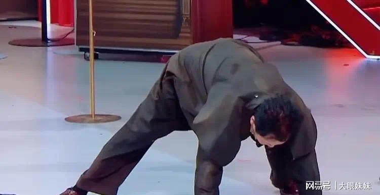 但节目上的活动却是“劈叉”,而他也是被迫无奈的用双手撑着地面,和活动的队友们努力完成着任务。