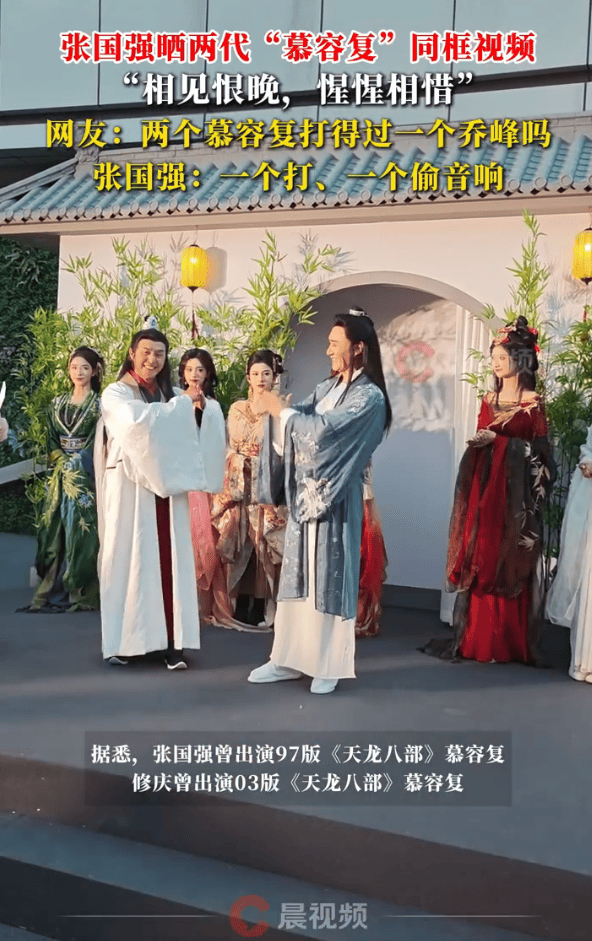 11月16日,张国强在社交平台发布了一段两代“慕容复”同框的视频,还配文感慨:“当慕容复遇见慕容复,相见恨晚。”