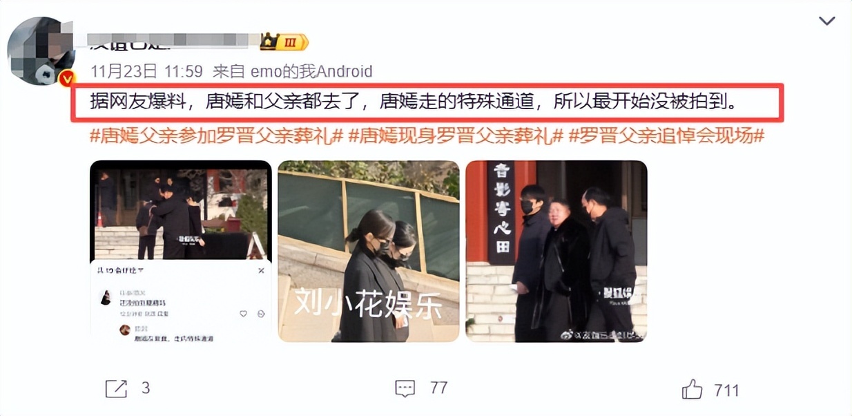 很快就有知情网友透露,唐女士和父亲都出席了葬礼,只不过女方是走的特殊通道的而已,不想太张扬。