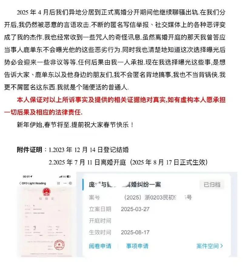 近日,一位自称为短剧演员鹿单东前妻的网友,在微博发布一些关于鹿单东本人的私生活内容。