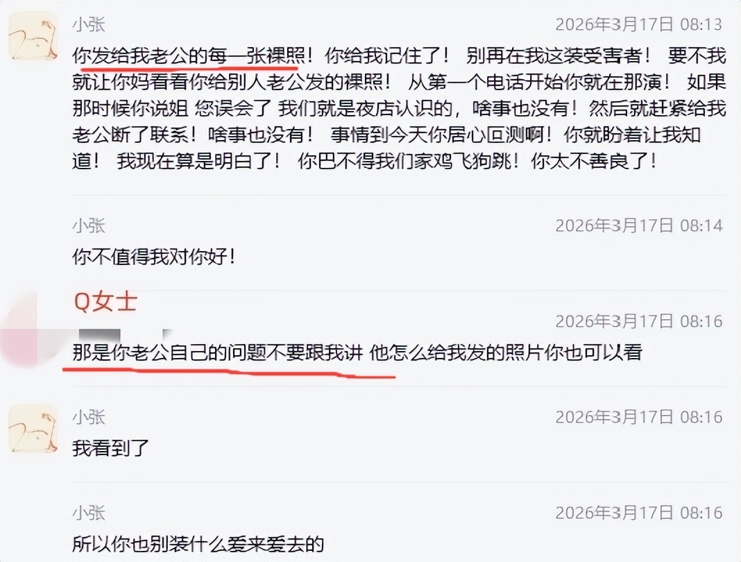 她也不是软柿子,得知真相后,直接找到Q女士当面质问,还放话:“你发给宋宁峰的每一张L照,我都看到了。”
