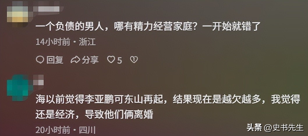 不管是作为丈夫还是父亲,似乎都没有尽到陪伴的义务,而几乎不可能是因为债务问题,因为两个人此前在2022年结婚的时候,就已经知道了李亚鹏的债务问题。