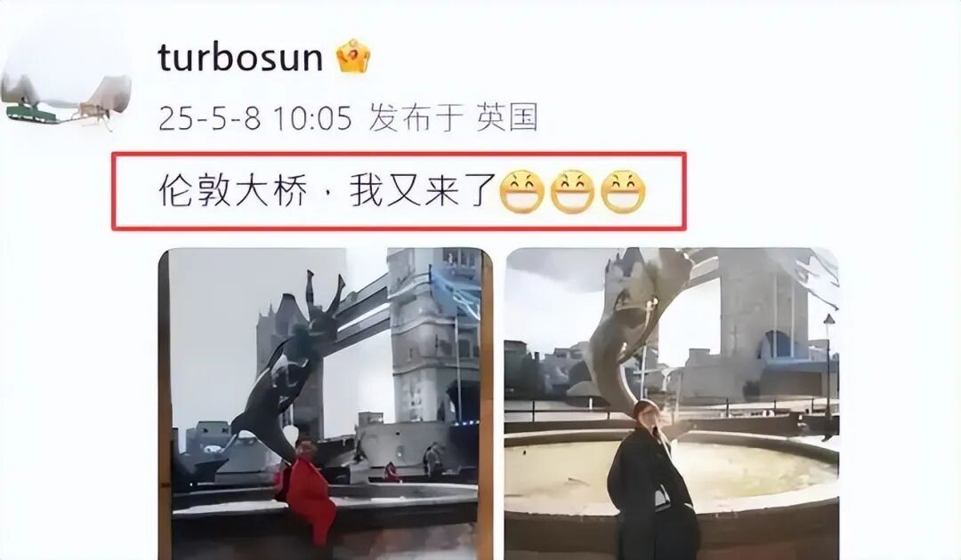 孙俪发过一句“伦敦大桥,我又来了”,配着微博显示的英国IP,被无数次截图、放大、再截图。