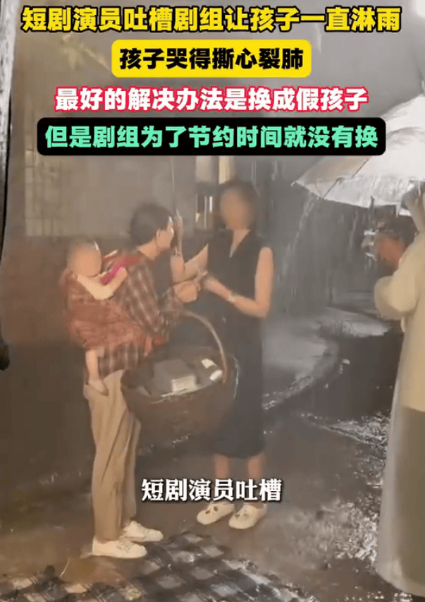 1月18日,“短剧演员吐槽剧组让孩子一直淋雨”登上热搜,引发全网热议。视频中可以看到年龄很小的孩子被演员背在背上,在倾盆而下的人造大雨中,孩子全身几乎全被淋湿。据了解,该场戏婴儿的片酬仅800元,部分家长可能因经济压力接受此类拍摄。