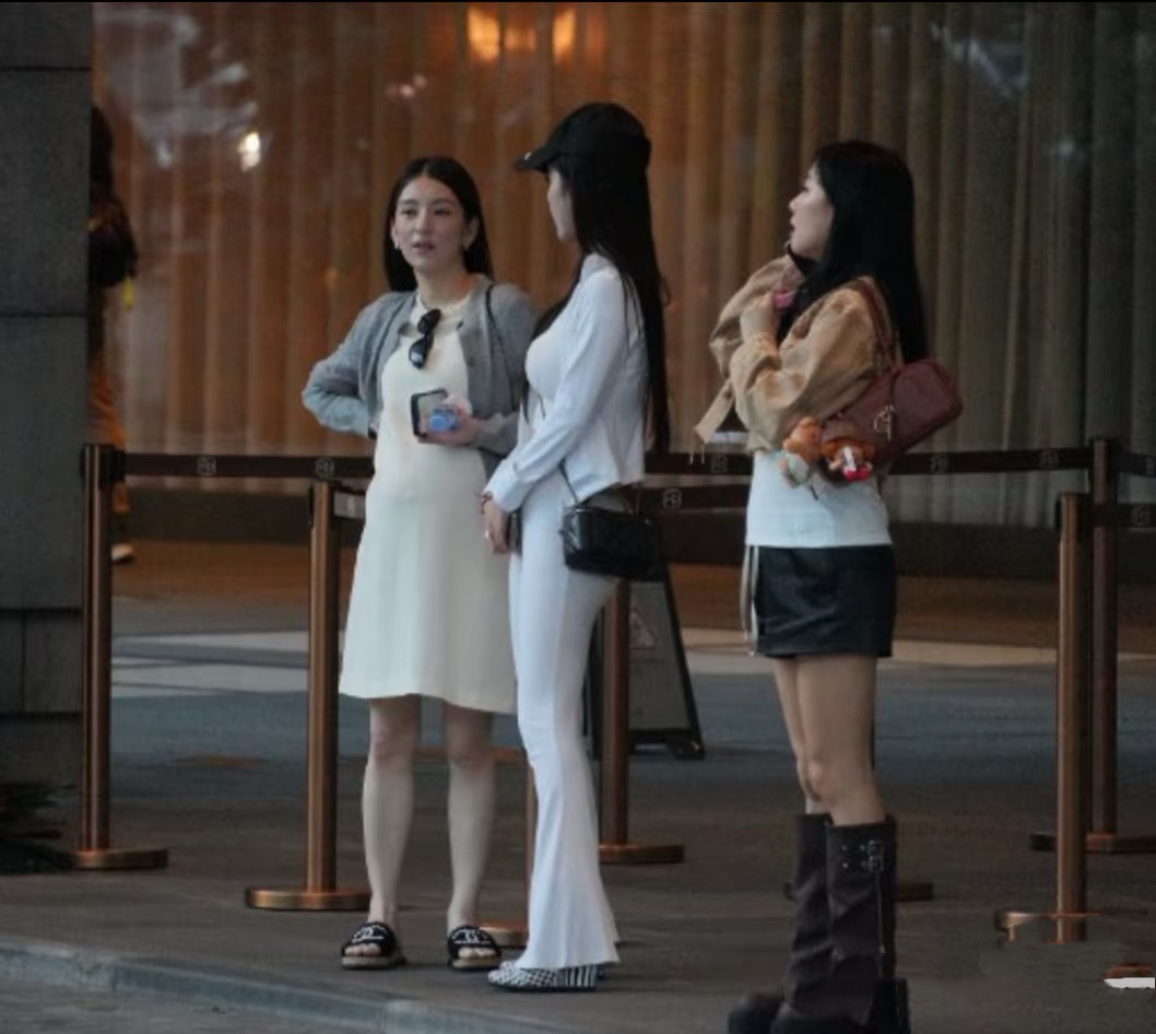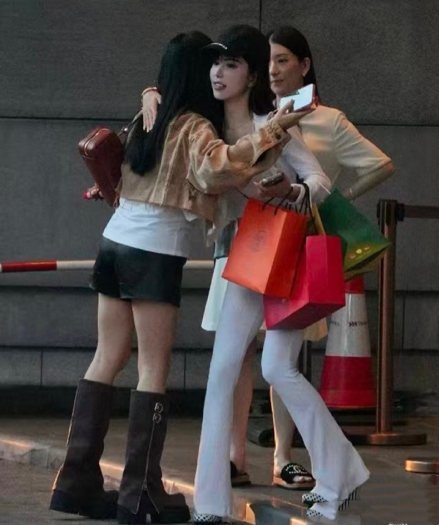 孙雨一个人提了好几个手提袋,就像是照顾嫂嫂的小姑。这个画面,真是“姑嫂”的既视感很明显。