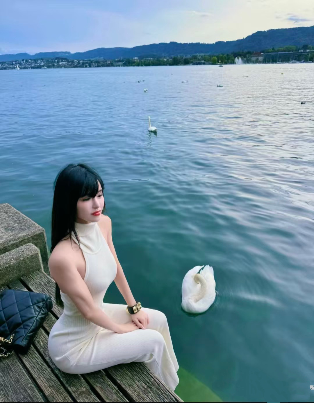 穿比基尼的孙雨,更是美得多不开眼。宝蓝色的比基尼套装,配上同色系的太阳镜,显得她皮肤又白又嫩,蜂腰细臀的身材太迷人了。