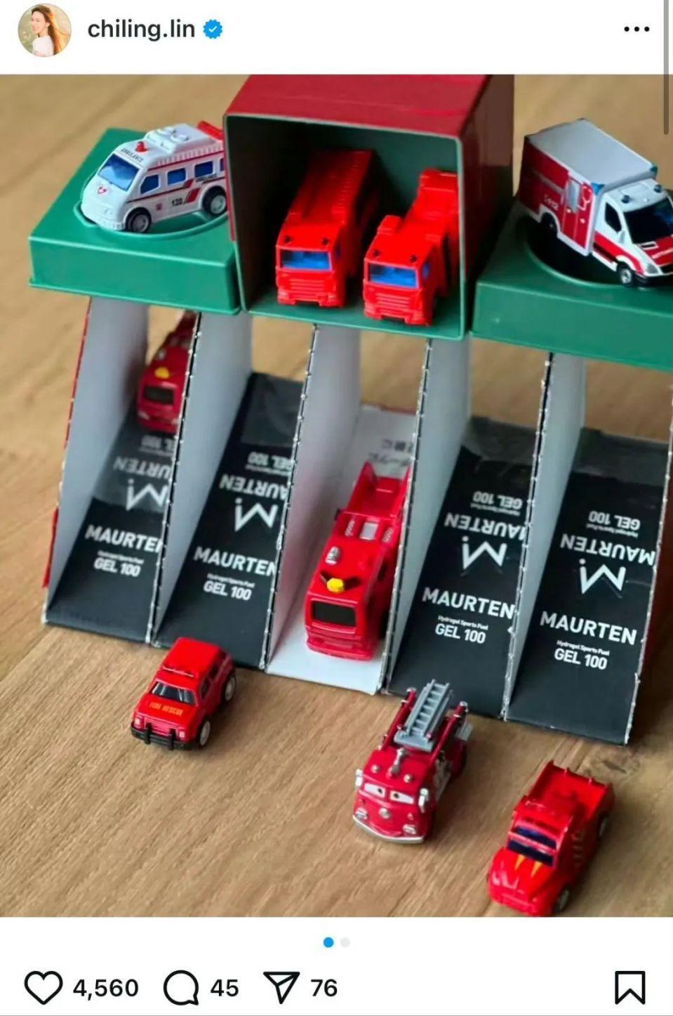 比如51岁的她,给3岁的儿子亲手做玩具,还晒在了自己的社交媒体上。