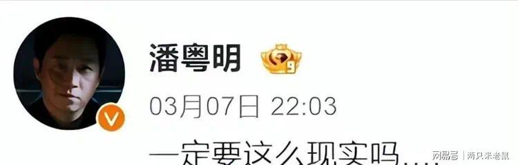 就在董洁访谈曝光的第二天深夜,潘粤明发了一条动态,只有一句“一定要这么现实吗……”。