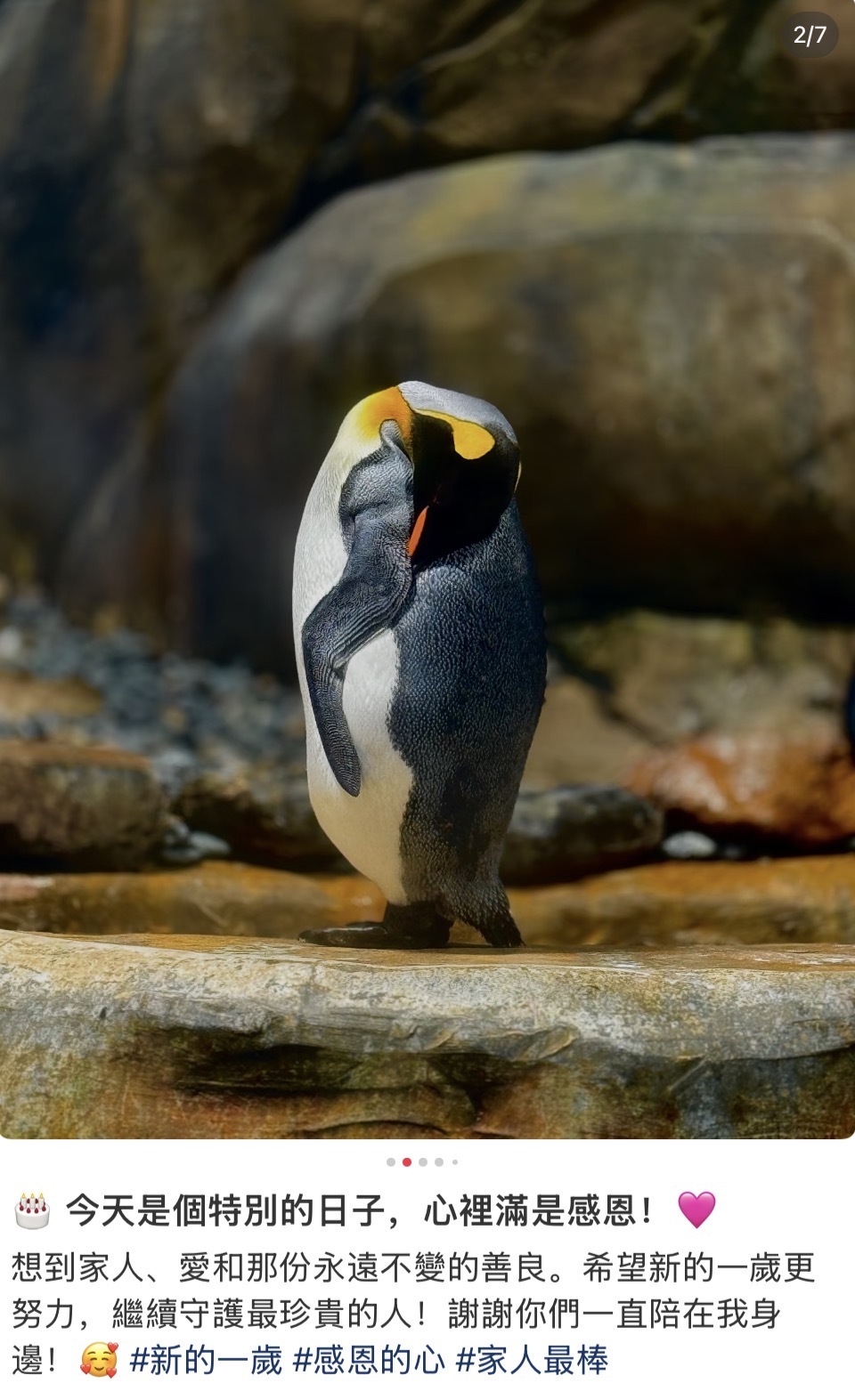吕丽君的女儿刘秀盈迎来23岁生日。一如既往,生日还是与家人一起庆祝,在吕丽君的相伴之下,全家去了海洋公园游玩、庆祝。已经23岁的刘秀盈童心未泯,大概是因为也很喜欢企鹅,又要去看企鹅,所以特地背了一个企鹅包,穿了一件企鹅造型的外衣,像个天真浪漫的孩子这般。虽然是一家人一起庆祝生日,不过刘銮雄必然不会在场,何况是在海洋公园庆祝。刘秀盈出于对家人的保护也没晒出与家人的合照,倒是吕丽君也晒出了在海洋公园的照片,以此祝福女儿。