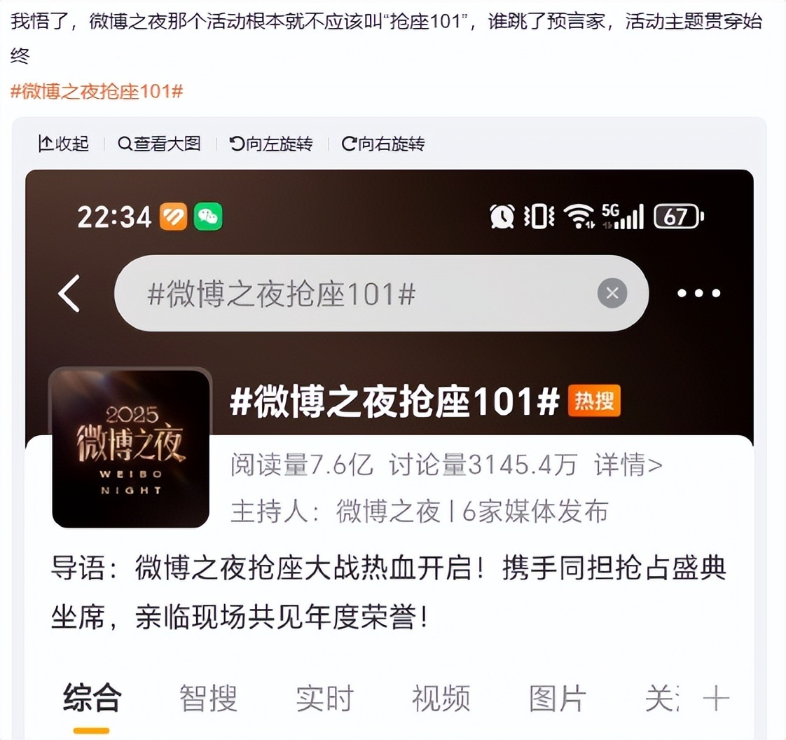 还有人觉得微博之夜今年有点触霉头了,而且一开始还弄了一个“抢座101”的主题活动,这简直就是神预言啊!