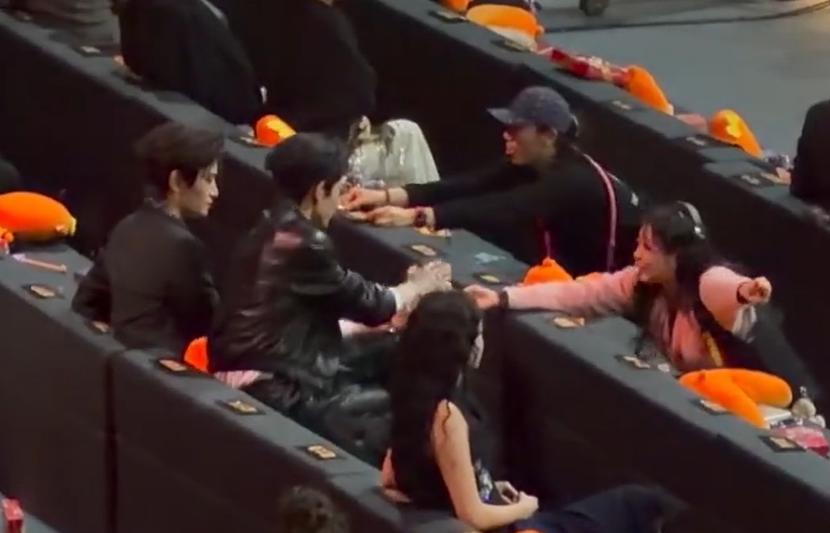 两个人明显关系不错,有啥说啥,而且也没管镜头拍不拍,看嘴型应该就是在讨论换坐的问题。