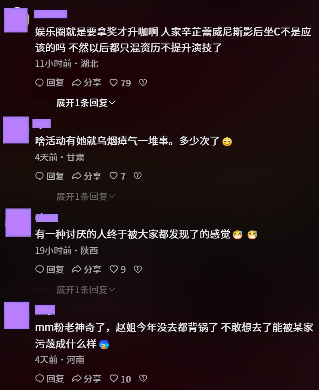 尤其是跟85花们一起出席活动的时候,更是争议颇大,最好笑的是这次赵丽颖都没来,还有粉丝怪在她的头上,真就是无妄之灾。