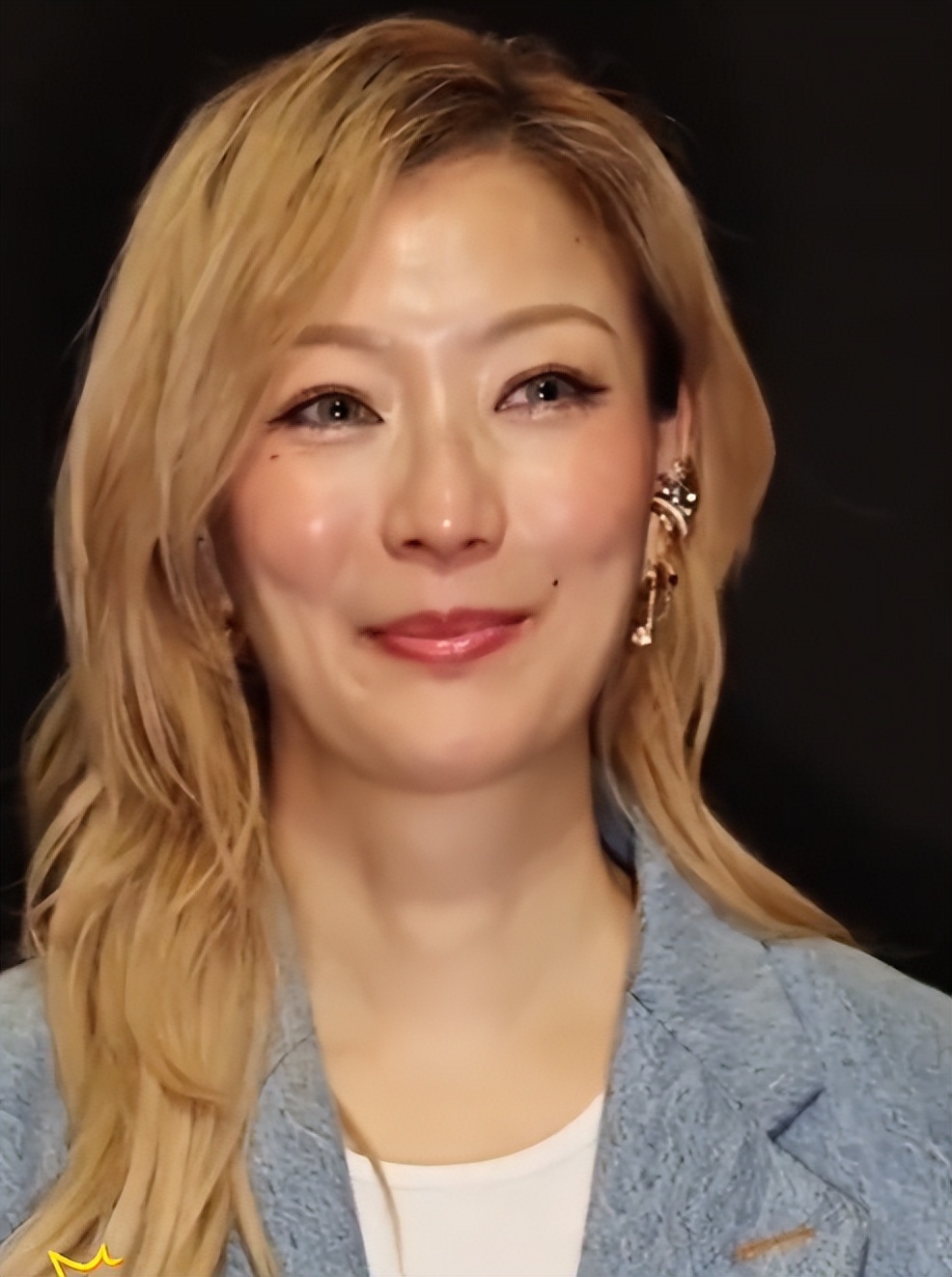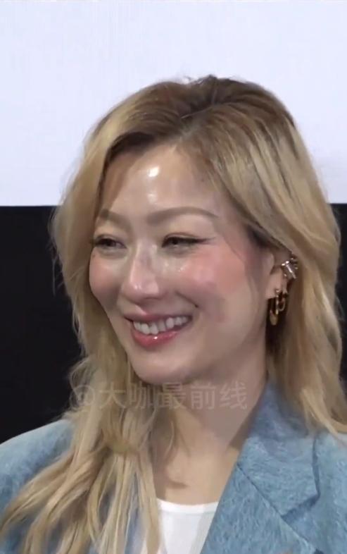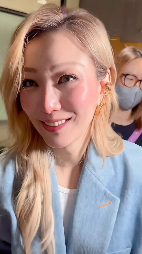 当天她的打扮十分吸睛,一头亮眼的黄色短发,搭配一身干练的蓝色西装,整个人看起来时尚又有气场,完全不像53岁的人。