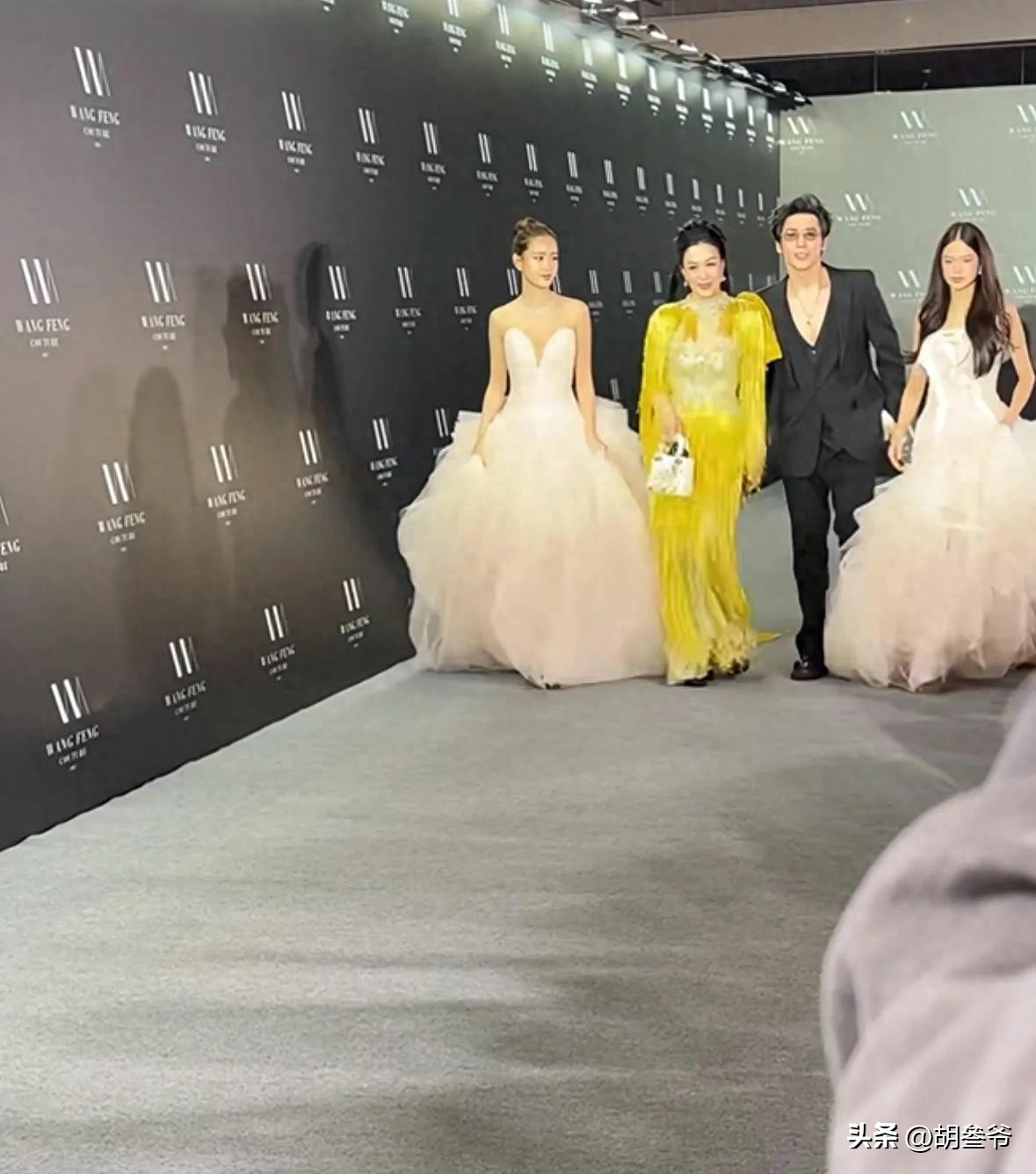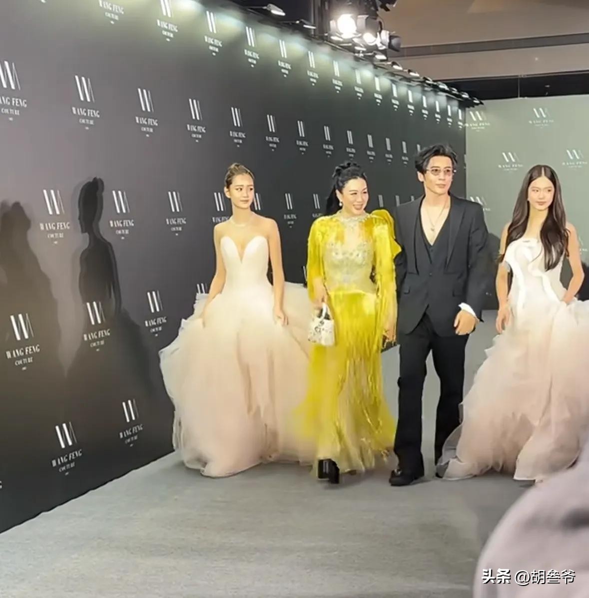 钟丽缇带着张伦硕,还有考拉、Jaden姐妹俩一起出席上海时装周红毯。
