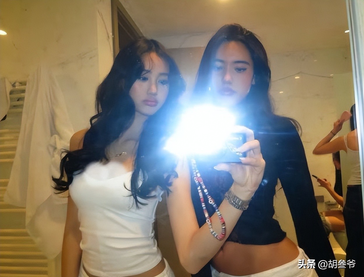 原本这样的造型搭配还算和谐,可姐妹俩全程的互动却让画面显得格外刻意。