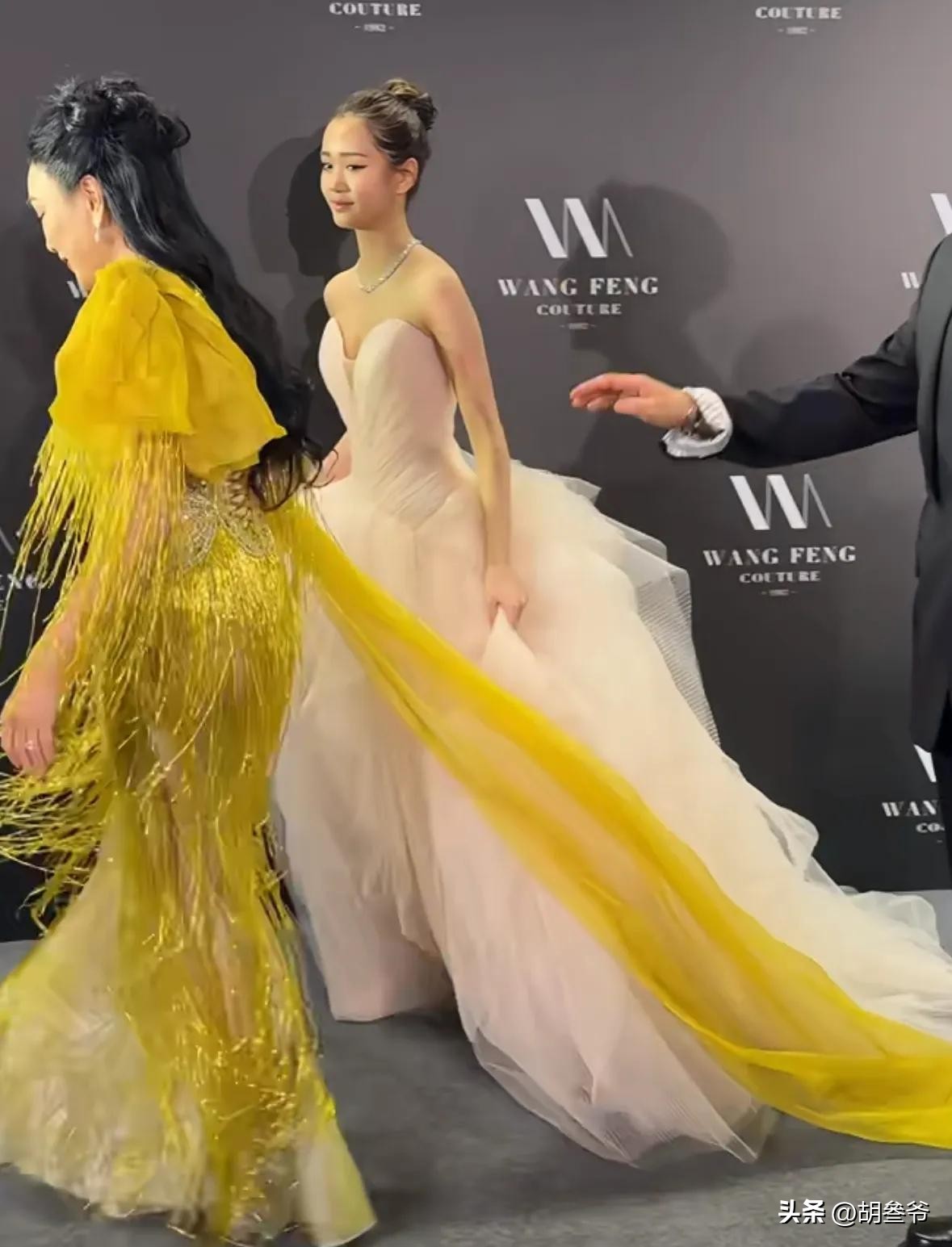钟丽缇当天穿了一身亮黄色的流苏长裙,饱和度极高的黄色在红毯上格外扎眼。