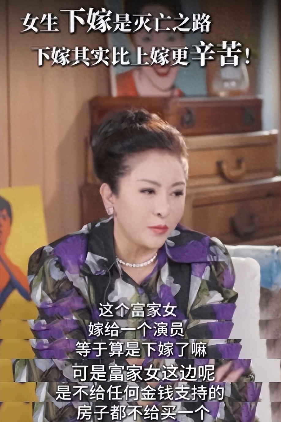 在说出富家女和男明星的事情之前,向太先提醒女孩们不要下嫁,直言下嫁就是自取灭亡,比上嫁还辛苦。