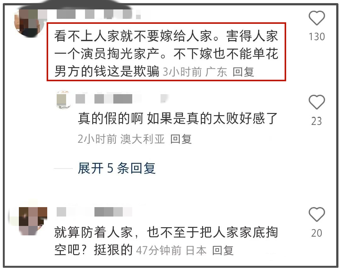 网友吐槽三太抠门,吐槽她们母女看不上人家,为什么还要让人家掏空积蓄办婚礼。甚至有网友用了“骗婚”这2个极端字眼。