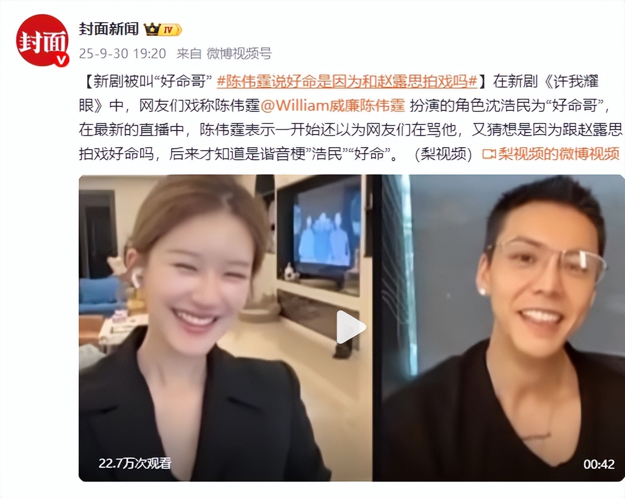 戏里是“好命哥”,戏外是新手爸,两股热度叠加,陈伟霆的人气不降反升。