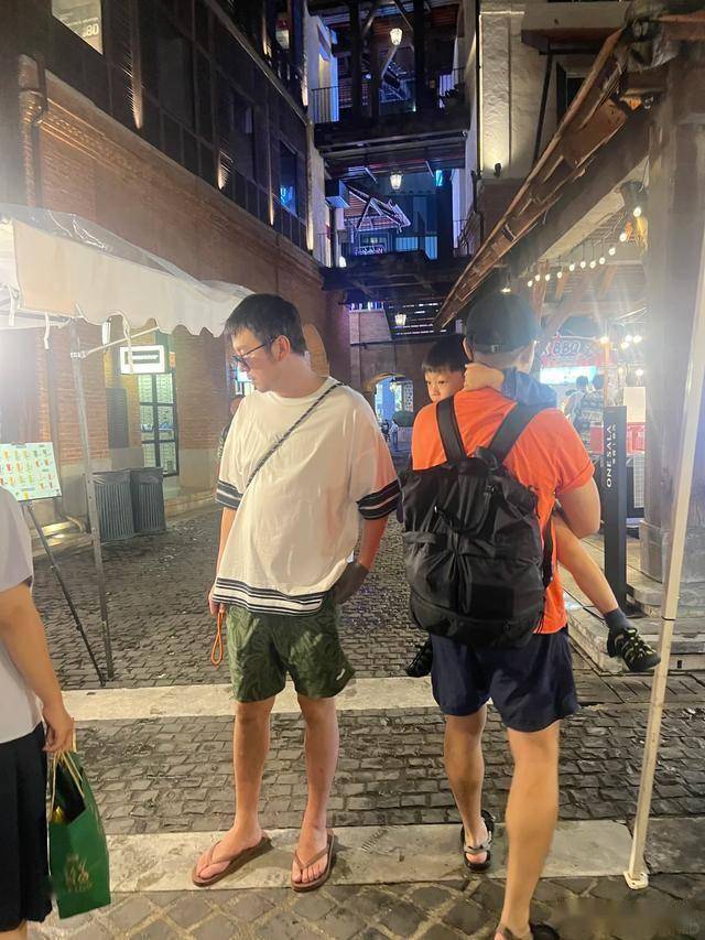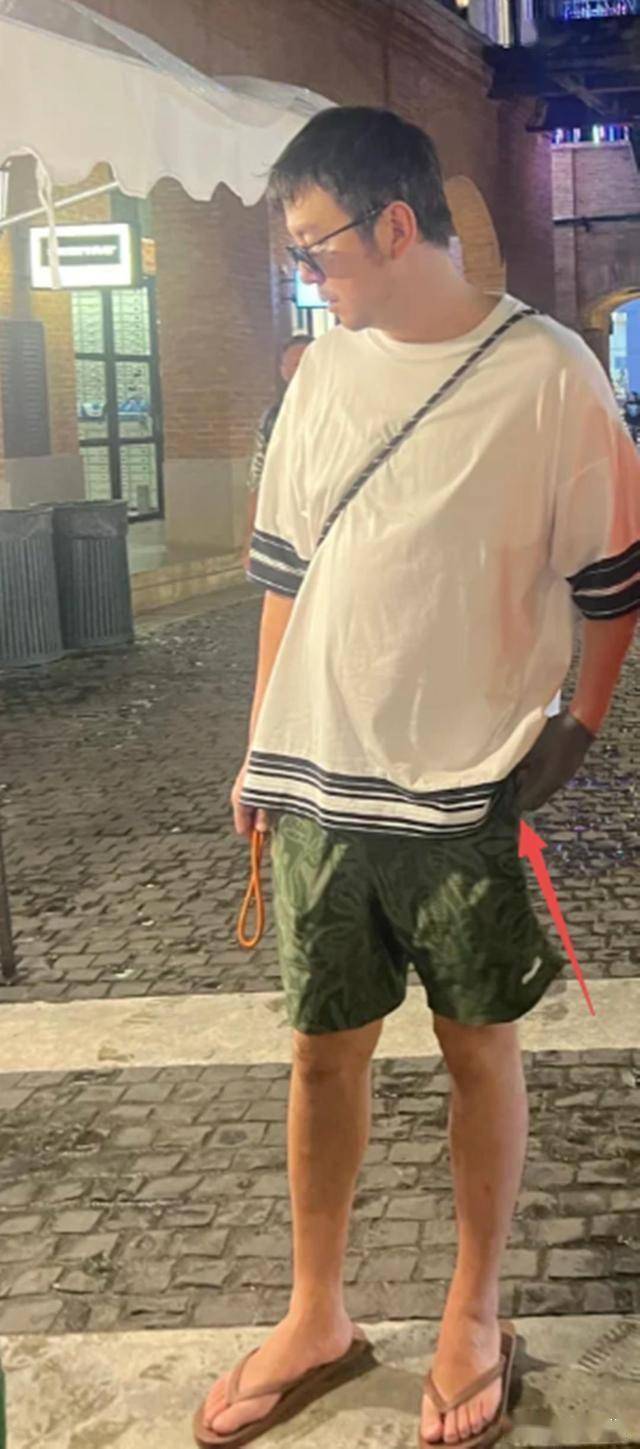 照片中他那大肚腩都快要藏不住了,哪怕穿着宽松的短袖依旧非常的明显。