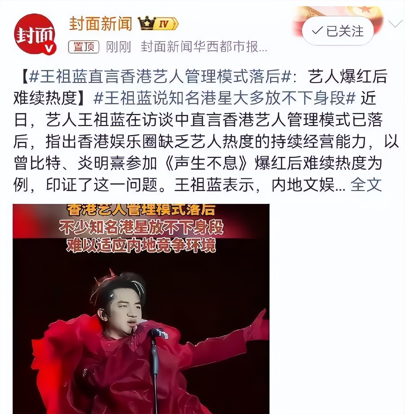 “香港明星爆红后留不住热度,知名港星放不下身段,这套模式早就落后了。”