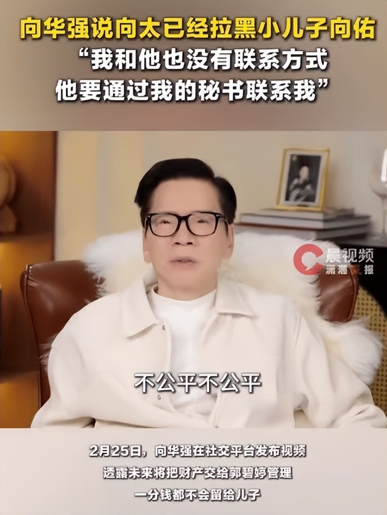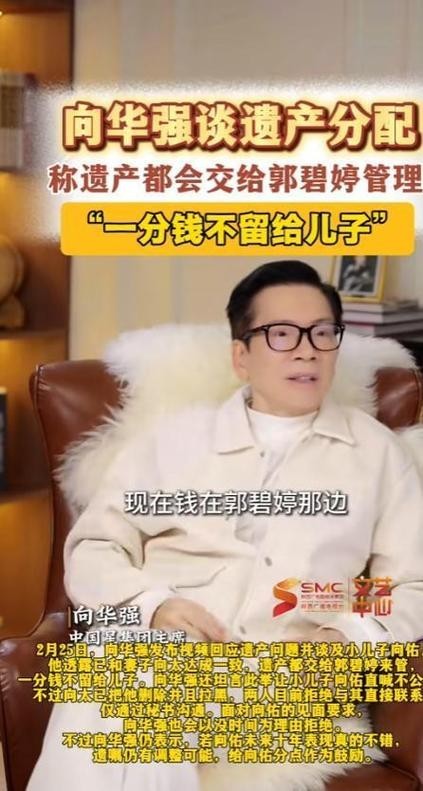 2026年2月25日,香港影视大亨向华强在抖音发视频,公开了自己和妻子向太陈岚的遗产分配决定,消息一出就引发了全网热议,还彻底闹僵了和小儿子向佑的关系。