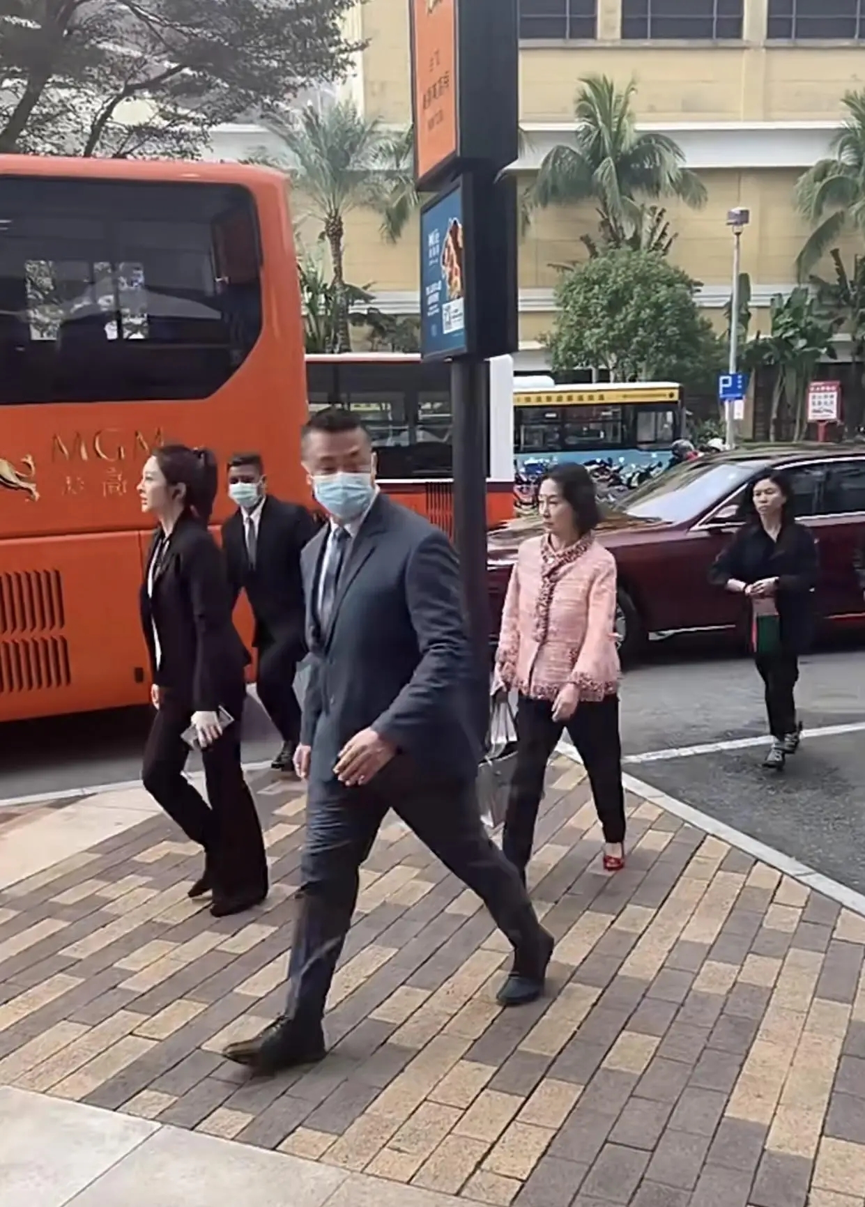 可别误会,这不是“装朴素”。真正的细节在后面:她背着老包,身边却跟着一队人。低调是外壳,安全是底盘。