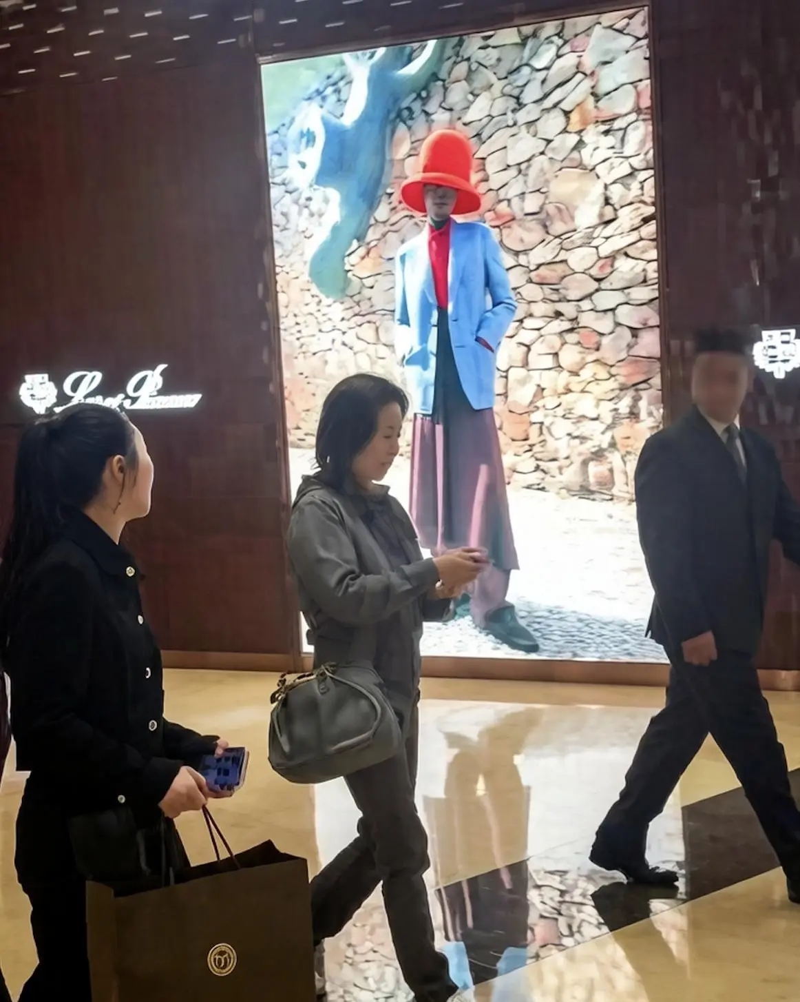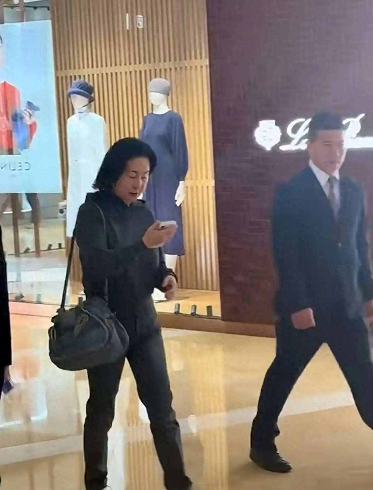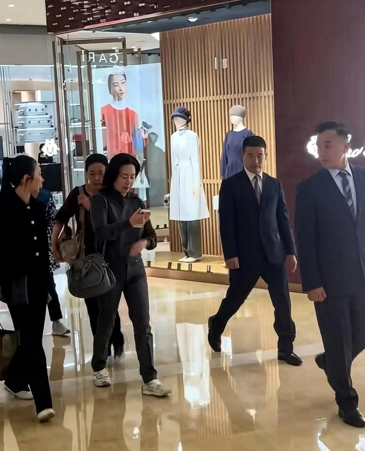 把商场视频和春节合影放一起,你会发现她的生活有两条线。一条线是烟火气:素颜、卫衣、老包、看手机、买完就走。另一条线是掌舵感:保镖开路、助理拎袋、春节同框、关系经营、公众叙事。