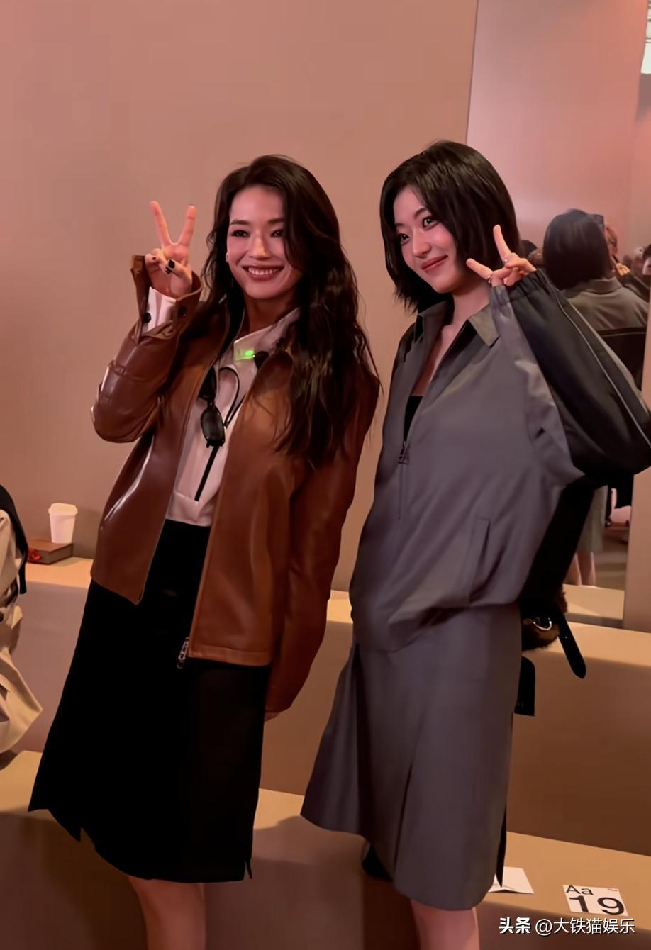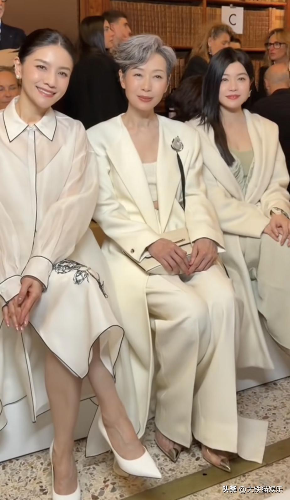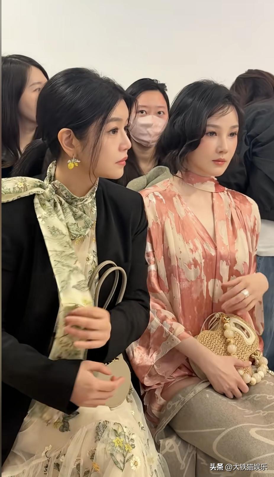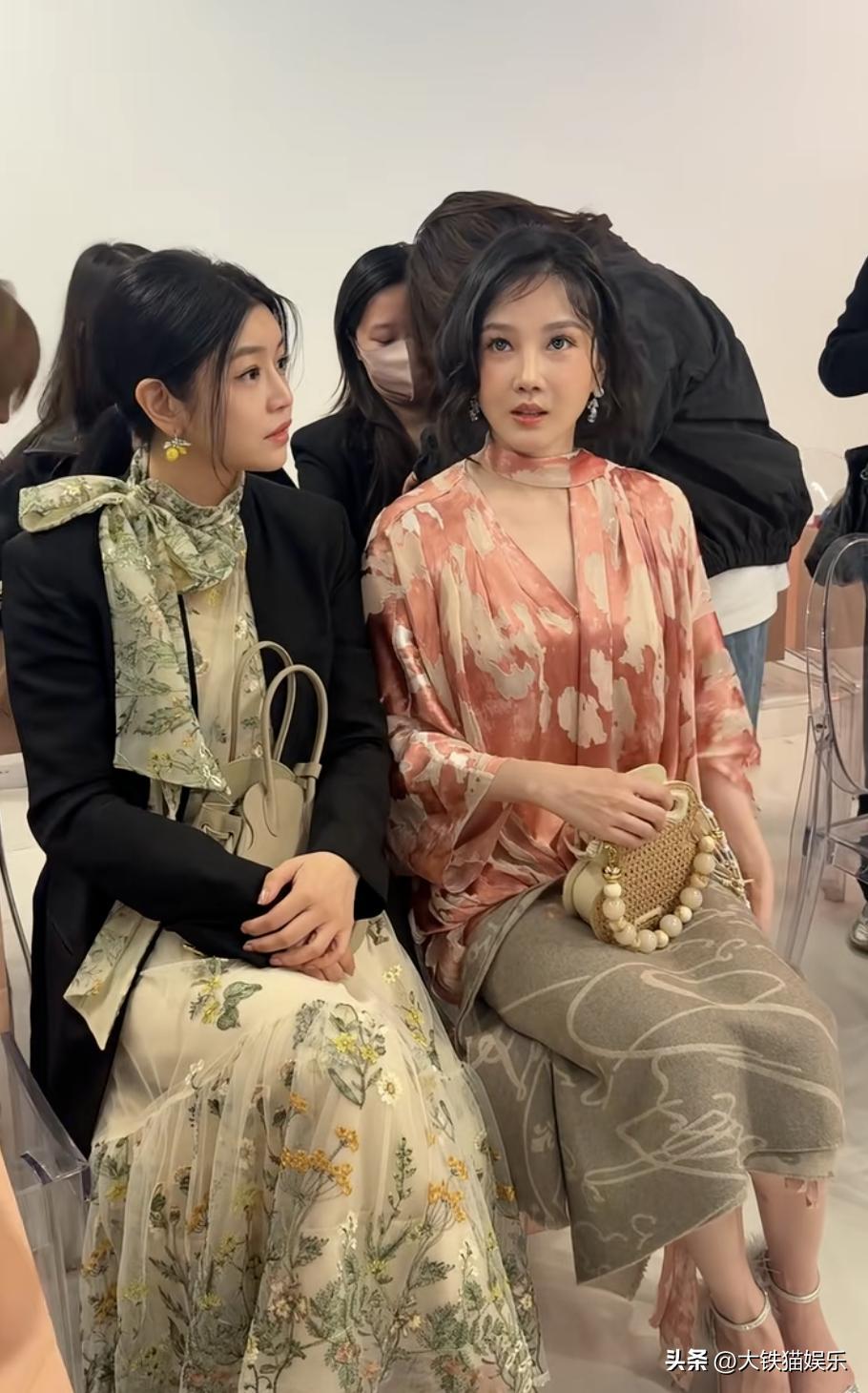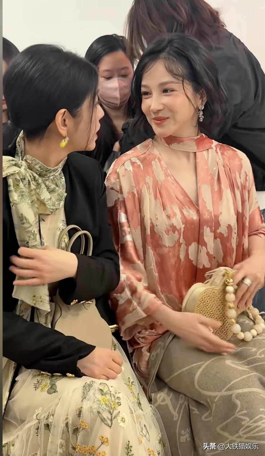 看秀的时候她跟陈小纭坐一起,43岁的她比37岁陈小纭大了六岁,但状态要更胜一筹。