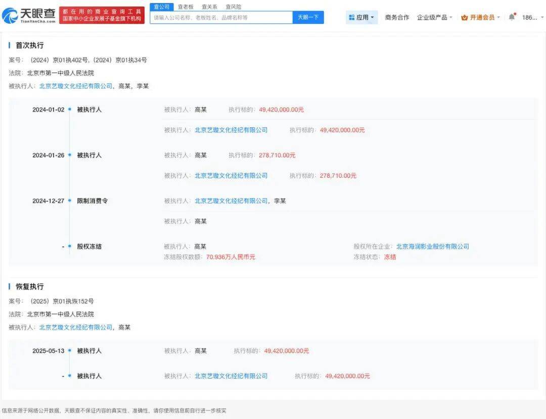 高云翔名下也有执行记录,从公开信息来看,他同样在被执行序列里。