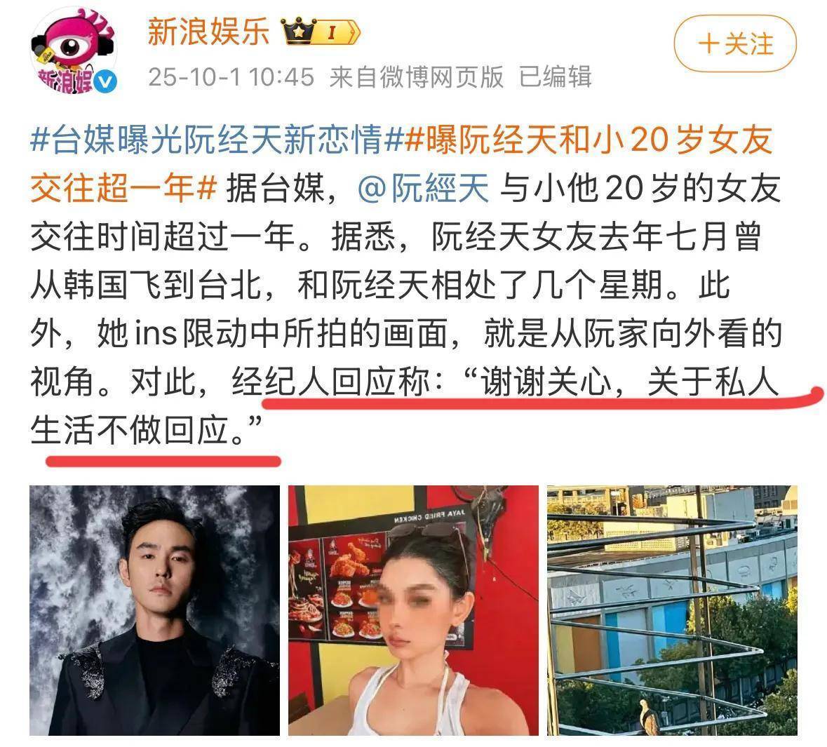 45岁的阮经天,状态依旧能打,还有一位交往一年以上小20岁的小女友。既然当事人选择低调,那就祝他们好好享受恋爱,长久幸福吧!